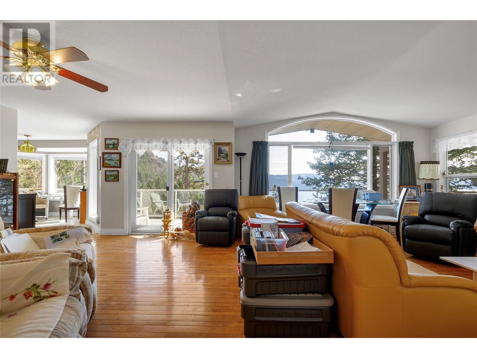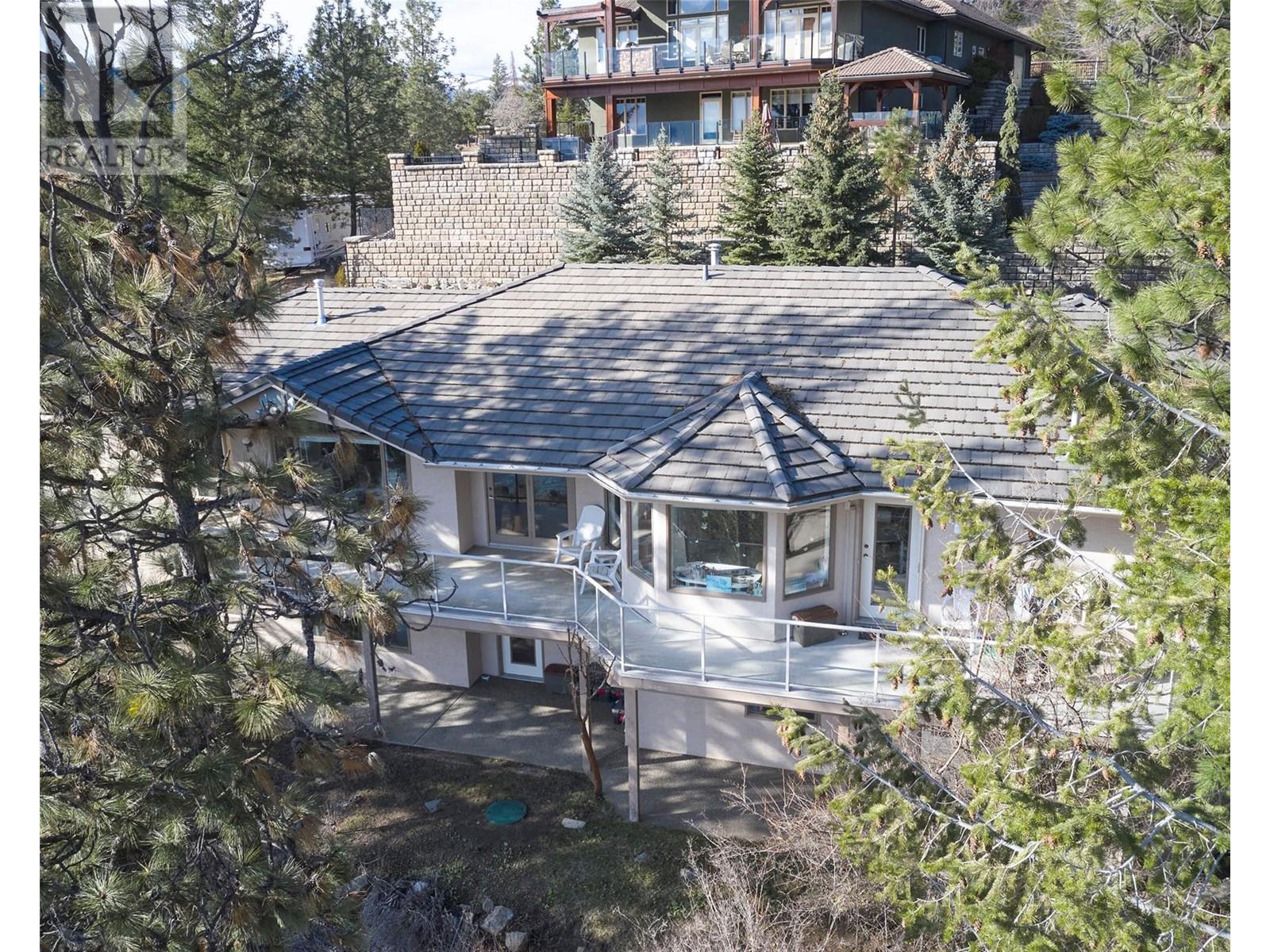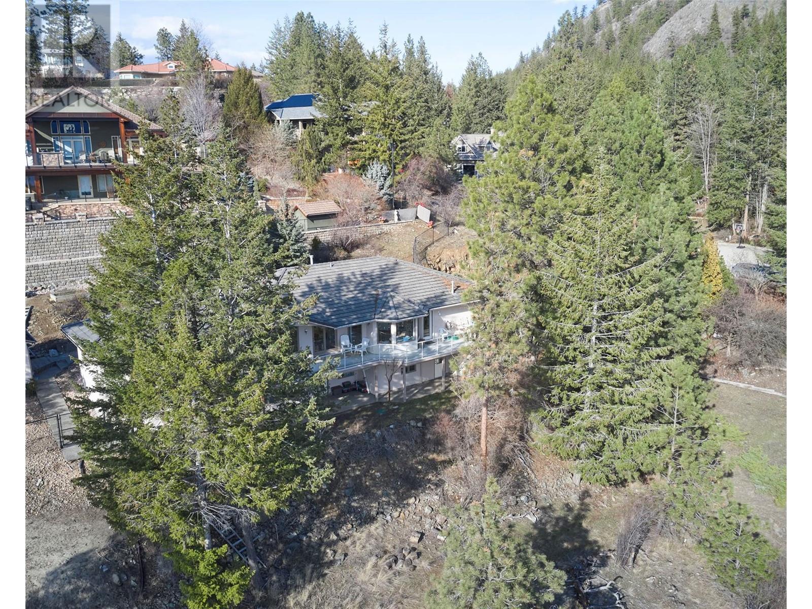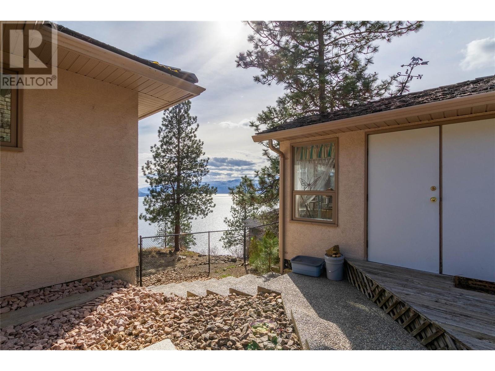 Location is everything, and this 3/4 acre property is one of a kind, perched above the shores of Okanagan Lake with panoramic views from every room of this almost 4000 square-foot rancher with a walkout basement. From the moment you arrive at the long driveway that takes off from a quiet cul-de-sac, you will notice this property is not only about views but also privacy. With the primary bedroom on the main floor, this home’s layout is both spacious and convenient. It includes a bright living room with vaulted ceilings that opens to the dining room, nook, kitchen, and finally ends with the cozy family room. Stepping down the spiral staircase into the basement, there is a huge guest bedroom, complete with ensuite and separate entrance to the patio. The enormous rec room is ready for family fun and entertainment, and a third bedroom and full bathroom round out the downstairs. There is also plenty of storage with two separate storage rooms and a workshop accessed from the outside. Living in this neighborhood, you have access to many walking trails that lead down to the lake, as well as 350 feet of shared lakefront, which includes a boat launch, bathrooms, and swimming areas. Come view this incredible Okanagan property today and bring your updating ideas! (id:17834)